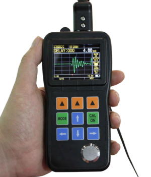| ■Aスコープ超音波厚さ計TM-280 ■価格:285.000-(313.000税込) TM280はカラー波形ディスプレイ付ハンドヘルドな超音波厚さ計 腐食部厚さ測定に適した分割型(2振動子)プローブを使用 Min/Maxモード、毎秒20の最少測定値リコール、必要な値を直ちに肘するフリーズモード、ゼロ補正、エコーーエコー測定、そしてAスキャンディスプレー等、多くの基本機能を持ちます ■特徴 片側からの測定 腐植部を切断することなく、片側から超音波信号を送ることによって、即座にデジタル測定を行います。 軽量・ポケットサイズ ツールボックスやポケットに入るハンドヘルド設計でアクセスの難しいエリアでの測定を容易にします。 カラーコードキーパッド 重要な測定機能にダイレクトにアクセスし、測定時間をセーブし、機能的に配置されたカラーキーは容易な操作を助けます。 大型カラーOLEDディスプレイ 読み取りの容易な大きい数字 仕様 測定レンジ:0.6mm〜508mm-測定素材、温度、プローブによって異なる 素材音速範囲:500〜9999m/s バッテリー:単三型アルカリバッテリー2本 動作時間:35時間以上 カラーディスプレイ:320X240ピクセル、高分解能OLEDディスプレイ ディスプレイコントラスト:10000:1 ディスプレイインフォメーション:LOS,min,max,min表示時に同時に測定値拡大、素材音速、ZERO,キャリブレーション、タンイ、フリーズ、フリーズ解除、バッテリー容量%、ゲイン-低・標準・高、echo to echo 表示分解能:0.01mmまたは1mm 測定単位:mm及びインチ ゲイン:条件に合わせて低、標準及び高 測定レート:4,8,16Hz 差異モード:予め入力した実測値との値の差を表示 アラーム:厚さ最小値/最大値、ビープ音とキーパッドでフラッシュランプ パワーoff:手動またはオートパワーオフ(5,10,20分後) Min/Max高速スキャンモード:最小値または最大値を表示 フリーズモード:表示中のディスプレイをフリーズ スキャンモード:最小厚さ値または最大厚さ値を表示 アラーム:最小厚さ値または最大厚さ値 キーパッド:設定・操作の容易なカラーイルミネーションキーパッド 波形:カラー波形表示 ゲイン調整:低・中・高可変 修正モード:Aスキャンショット(基本的な機能) Echo to Echo:TM-270Dではコーティング厚さを除き、母材厚さのみを測定 データロガー: Echo to Echo: Besides the last function, add Measures the metal thickness only(ignore paint and coatings)as Model TM270D データロガー:TM-280DLではファイル区分とアドレスを持つ100.000の厚さデータを保存 出力:2.0高速USB、データ観察ソフトウェアへ転送 サイズ:153mm x (L) 76mm) (W) x 1.25" (37 mm) (H) 重量:280g 動作温度:-10° C to 50° C 標準構成 TM280本体 -5MHz振動子径10mmプローブ -プローブケーブル -カップラント容器 -試験証明書 -操作マニュアル -ハードキャリングケース -保証:1年間 厚さ測定原理/素材音速 超音波厚さ計TOPへ |
