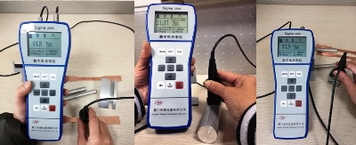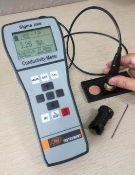 価格1.030.000-税抜 1.133.000-税込 Sigma2008Bはエディーカレント(渦流)計器の一種、渦流相対法を応用し設計したデジタル電導率計です。非磁性金属の測定に適用され、主に冶金、機械、電力、航空宇宙、原子力、軍事工業などでよく使われます。 ○ 非磁性材料の電導率、導電率、抵抗率の測定 ○ 熱処理の評価 ○ 熱によるダメージの検知、材料の疲労とヒビ割れのチェック ○ 金属の純度の評価 ○ 金属の均一性の検査 ○ 材料判別 ○ 強度と硬度の検査 ○ 粉末冶金部品の密度検査 特徴リフトオフ0.5mm、塗装・フィルムの上から測定 周波数500KHz、超薄型の材料を正確に測定 連続測定と曲面測定モードで応用範囲が大きく拡大 多種な温度補正でさまざまな温度環境下の測定精度を保証 自動測定対応、リアルタイムの測定値を出力要打ち合わせ+オプション主な特徴 ・大画面に大きい字体。測定結果、測定周波数、温度、温度係数など重要なデータを同時に表示。 ・バックライト設計しており、暗い環境でも試験データを読み取れます。 ・2種類の周波数切替、航空機産業標準の60KHzと超薄型材料測定に対応する500KHz。 ・独特な温度係数設定と自動校正の設計でスマートな操作とで安定した測定。 ・リフトオフ0.5mm、塗装、薄い膜、埃等の絶縁物があっても測定の精度を保証。 ・多種な温度補正、被測定物の温度係数と合わせ、どんな温度環境下でも測定精度を保証。 ・測定プローブには互換性があり、ユーザー自身でプローブの交換が出来ます。 ・データロガーを内蔵しており、500グループの重要な測定データを保存できます。さらにコンピューターに接続して詳細な報告を出力できます。 ・2種類の測定単位(MS/mと%IACS)のデフォルト表示が選択できます。また測定画面下でワンタッチで抵抗率の表示に切り替えられます。 ![]() 500KHzプローブで薄物素材、円柱、線材の導電率測定 ![]() 60KHzプローブと500KHzプローブ 仕様 周波数:60 KHz、500KHz 測定範囲:0.51% IACS〜112 %IACS(0.3 MS/m〜65 MS/m) (抵抗率0.01538Ωmu/m〜3.33333Ωmu/m) 分解能:0.1 %〜0.001 %IACS 測定精度:±0.5%(温度0℃〜50℃)、±1%(温度0℃〜50℃) プローブリフトオフ:0〜0.5 mm 温度測定範囲:0℃〜+80℃(分解能0.1℃、最大精度0.5℃) 自動温度補正:自動的に測定結果を20℃時の測定値に補償 通常動作環境:温度0℃〜+50℃,湿度0〜95% (結露なし) 表示:大画面、バックライトあり、補正20℃時の電導率、 現在温度下の電導率、温度値、温度係数等を同時表示 データロガー:500グループのデータを保存 コミュニケーション:RS232、Baud rate:2400bps、bit:8 電源:3.7V、2200mA/h、リチウムポリマーバッテリー 重さ・サイズ:0.5Kg(電池含む)220 mmX95 mmX55 mm 標準構成 プローブ:直径14 mm周波数60 KHzプローブ、直径8 mm周波数500 KHzのプローブ 手持ち表面温度センサー ![]() PC通信ケーブル、操作マニュアル、基準片、電源アダプター計器スタンド、 ディスク、高耐衝撃アルミトランク収納、 導電率計TOP HOME |